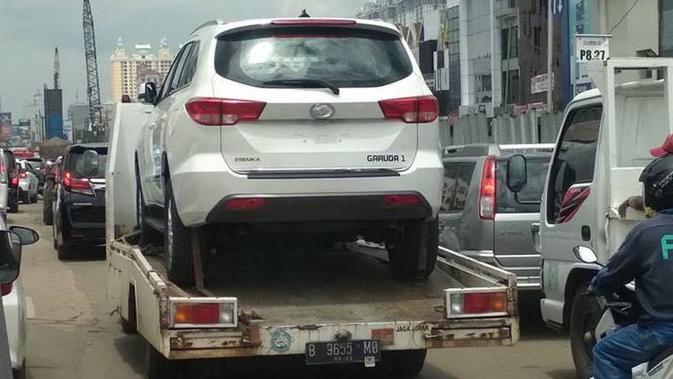 Sosok SUV Esemka Garuda 1 yang tertangkap kamera tengah digendong truk towing di sebuah jalanan Ibu Kota dikait-kaitkan dengan Foday Landfort.