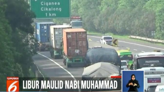 Liputan6.com, Jakarta - Arus kendaraan di ruas Tol Cipularang di Purwakarta, Jawa Barat di libur Maulid Nabi Muhammad SAW terpantau ramai dan lancar. Bahkan tidak terlihat adanya kemacetan.
