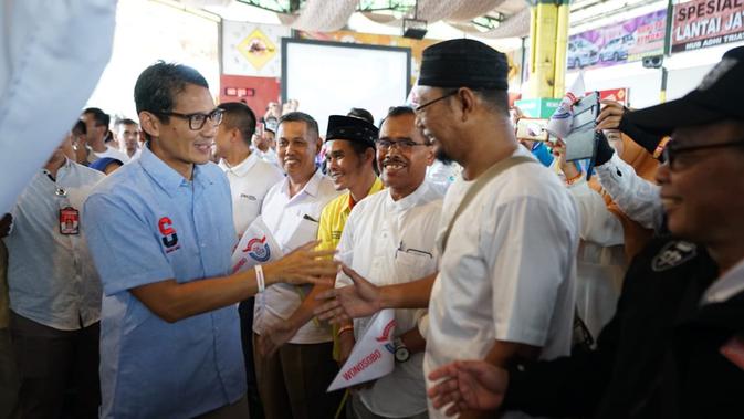 Liputan6.com, Jakarta - Calon wakil presiden nomor urut 02, Sandiaga Uno kembali menyambangi pasar. Kali ini, ia mendatangi Pasar Wonosobo di Jawa Tengah untuk melihat langsung keadaan perekonomian di sana.