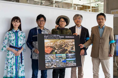 10日の公開に先駆け、9日にはマスコミ向けに第3村ミニチュアセットの先行公開が行なわれ、SMALL WORLDSの近藤正拡代表取締役社長や、エヴァンゲリオン版権管理を担当するグラウンドワークスの神村靖宏代表取締役、カラーの文化事業担当学芸員でアニメ特撮アーカイブ機構の事務局長も務める三好寛氏に加え、シリーズで相田ケンスケ役を務める声優・岩永哲哉氏が登場した。